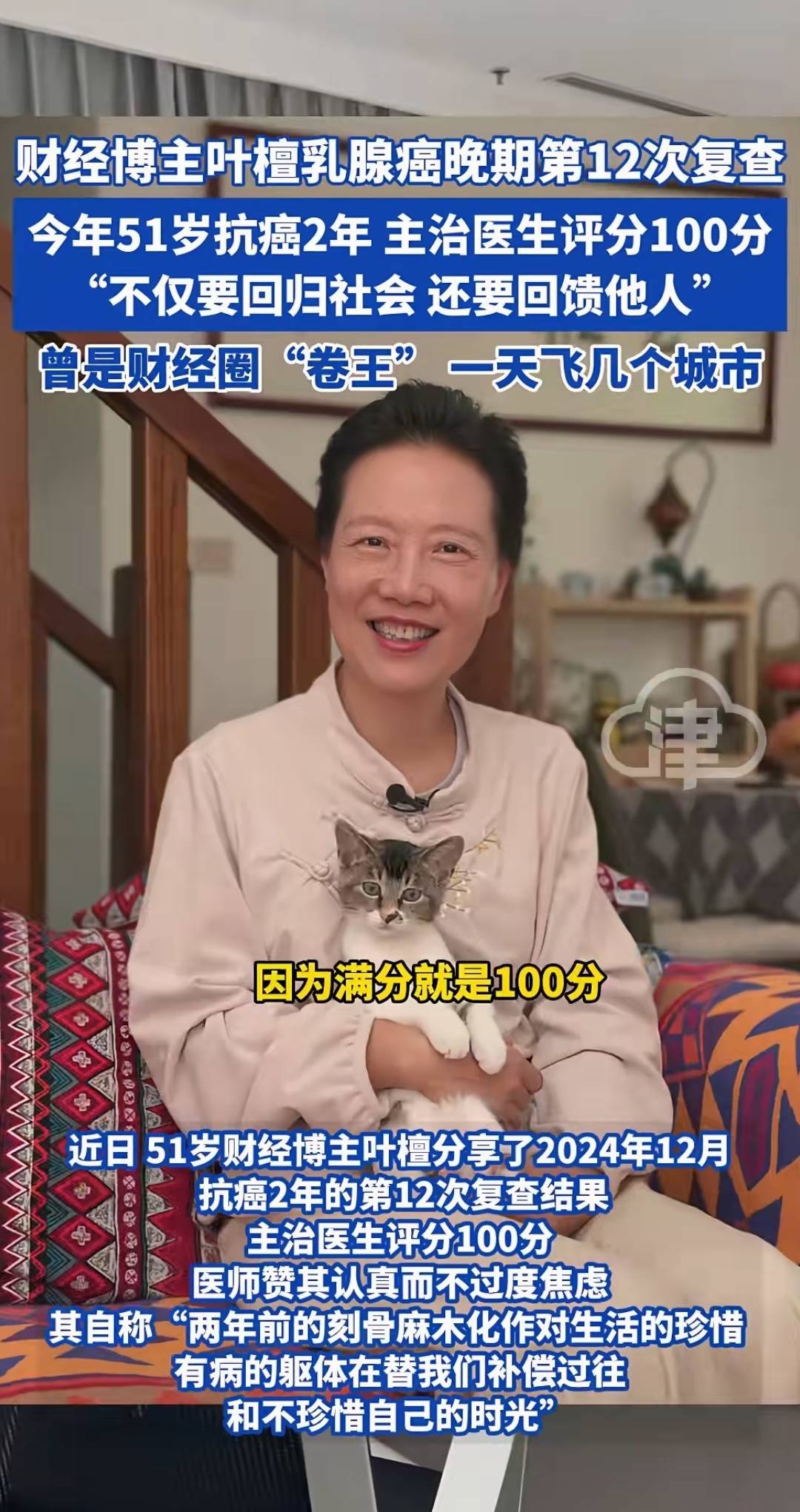 抗癌成功后,叶檀做的第一件事就是澄清网上的谣言。“说我靠天价抗癌药续命是假的,医保报销后每月自付不到三千;说我离婚是因为生病也不对,我们早就和平分开了。”她更想提醒所有人:“别学我年轻时硬扛,身体发出的信号一定要重视;也别轻易说‘不要孩子’,等你老了就知道,陪伴是用钱买不来的奢侈品。”如今她把公司交给合伙人,每周去医院做志愿者,给病友们讲自己的故事。